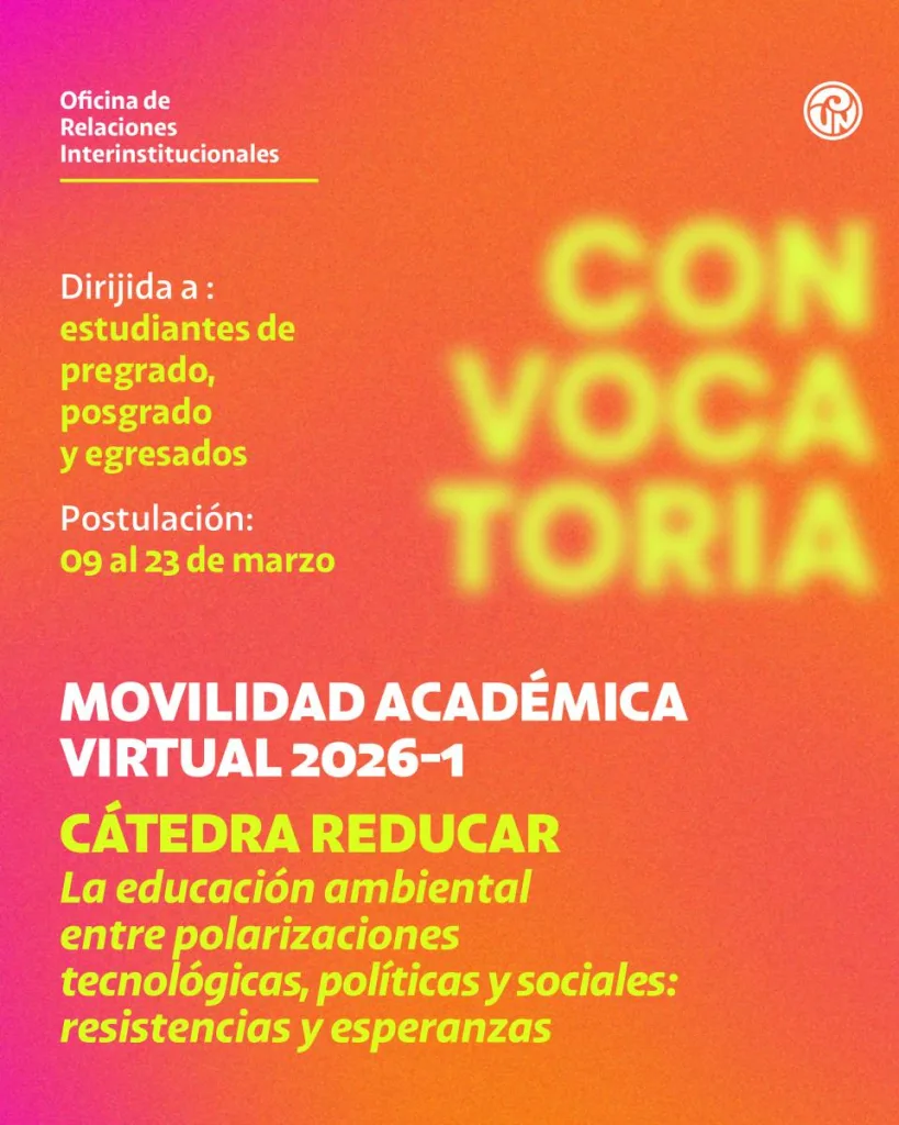 La Universidad Pedagógica Nacional invita a estudiantes de pregrado, posgrado y egresados a participar en la Cátedra REDUCAR 2026-1: La Educación Ambiental. Entre polarizaciones tecnológicas, políticas y sociales: Resistencias y …